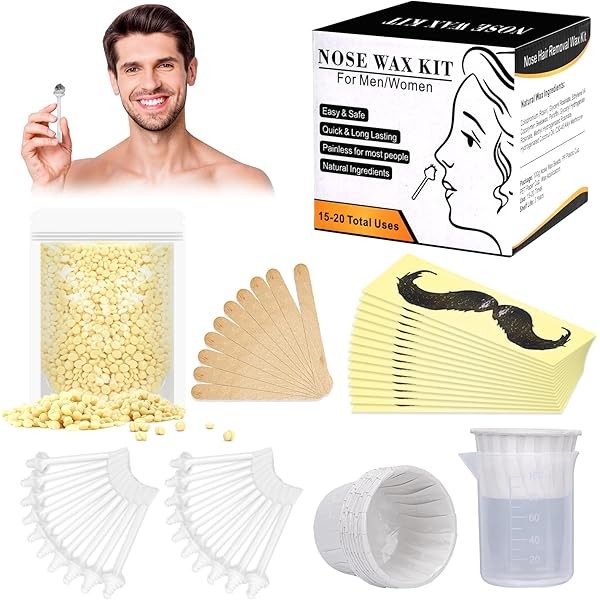 Nose Wax Kit for Men Women, Yovanpur Nose Hair Waxing Kit with 100g Nose Hair Wax Beads (15-20 USES), 20 Applicator, 15 Mustache Protector, 10 Paper Cups, 1 Measuring Cup - Easy, Quick and Painless