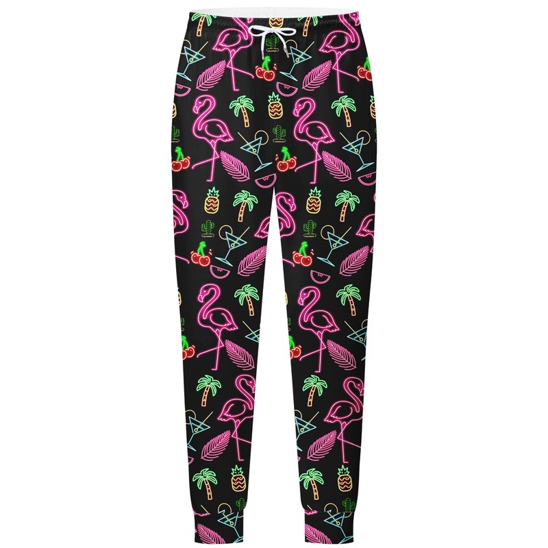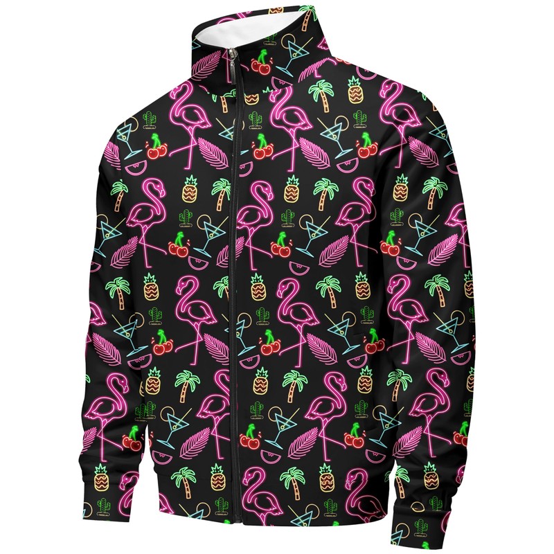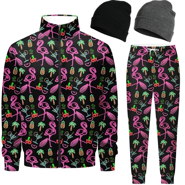 Nosirhoc Men's Tracksuits Neon flamingos tropical Sweatsuits 70s 90s 80s outfit for men 2 Piece Casual Full Zip Active Sports Sets with 2 knit Cuffed Beanie 02-L