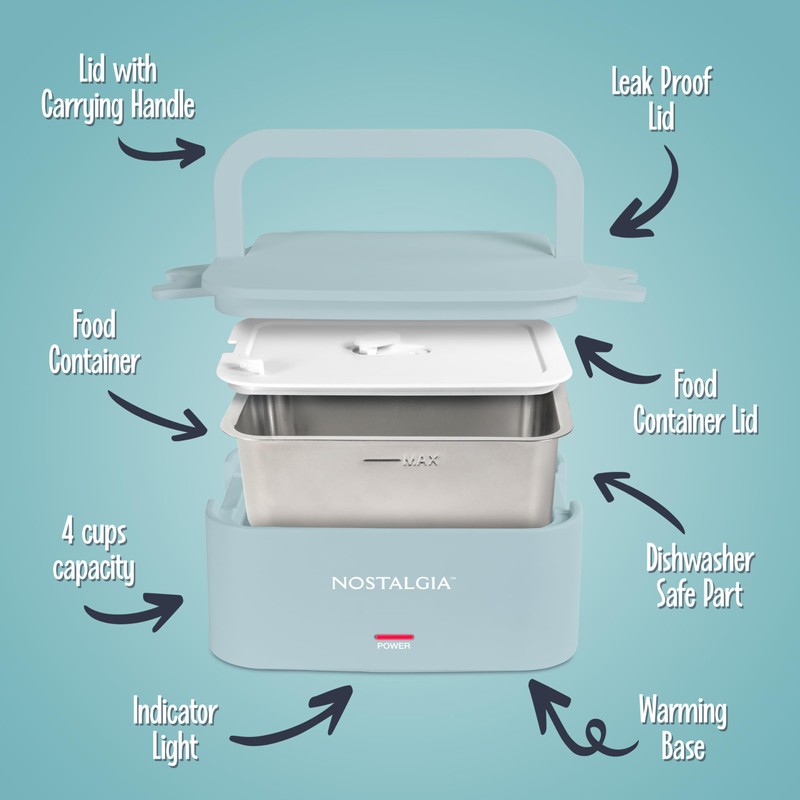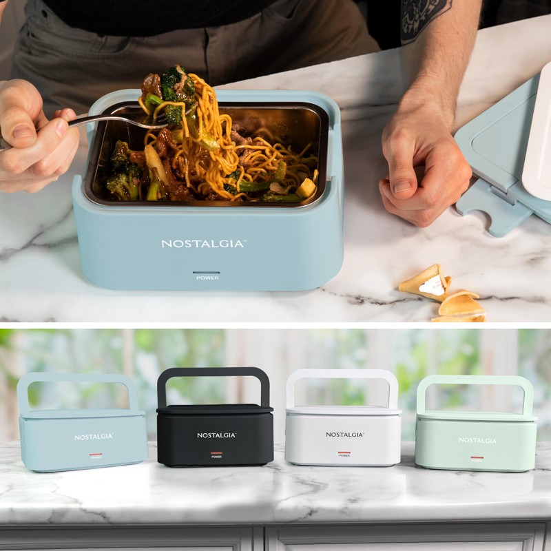- CONVENIENT FOOD WARMER: Upgrade your meal prep with Nostalgia's self heating lunch box for adults, perfect for soup, pasta, stir-fry, and more.