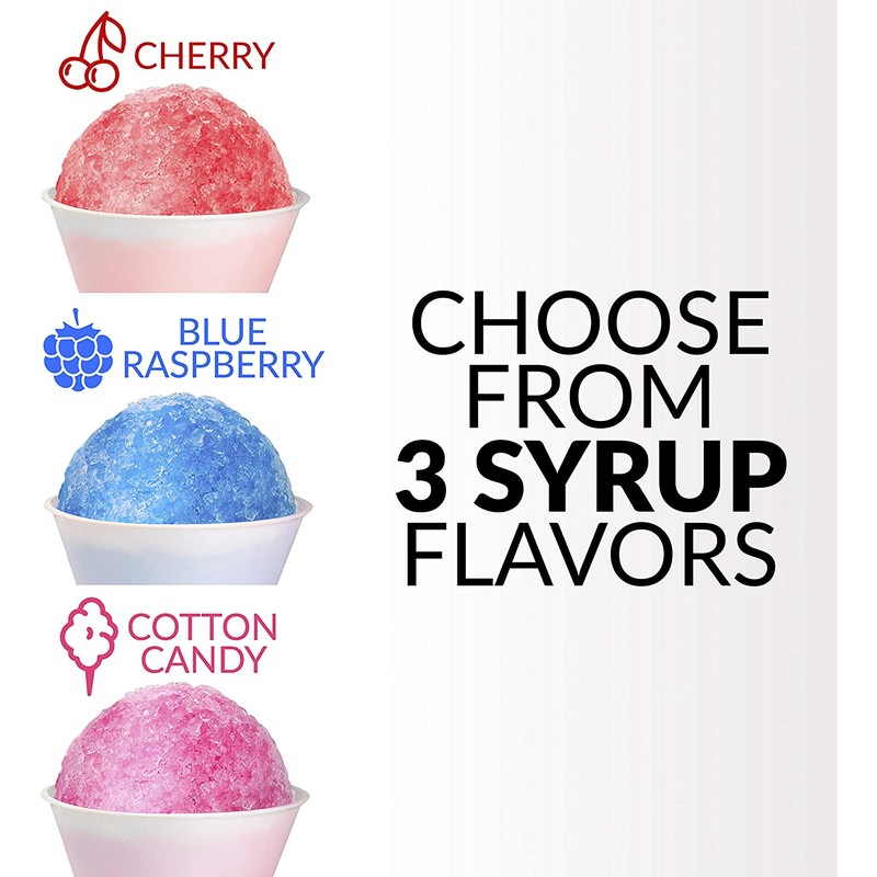 - ALSO INCLUDED - Fill 20 snow cone cups with shaved ice and syrup, then use the included 20 spoon-straws to enjoy your snow cone