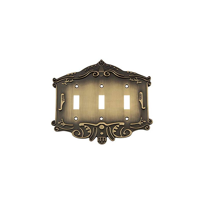 Nostalgic Warehouse 719724 Victorian Switch Plate with Triple Toggle, Antique Brass