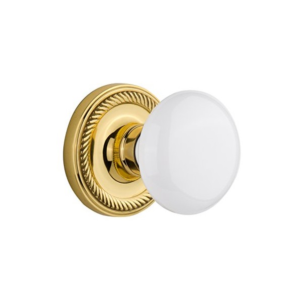 Nostalgic Warehouse Rope Rosette with White Porcelain Knob, Single Dummy, Polished Brass