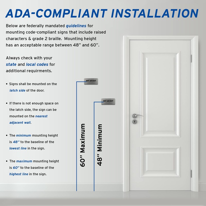 • Included with our signage is an installation guide and double-sided mounting tape, allowing for easy installation