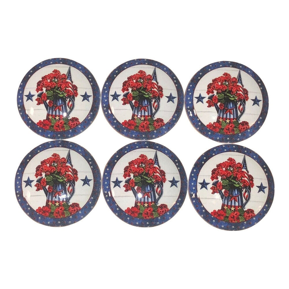 Not Available Set of 6 Red White and Blue Floral Patriotic Wood Cabinet White 1.5" Wide