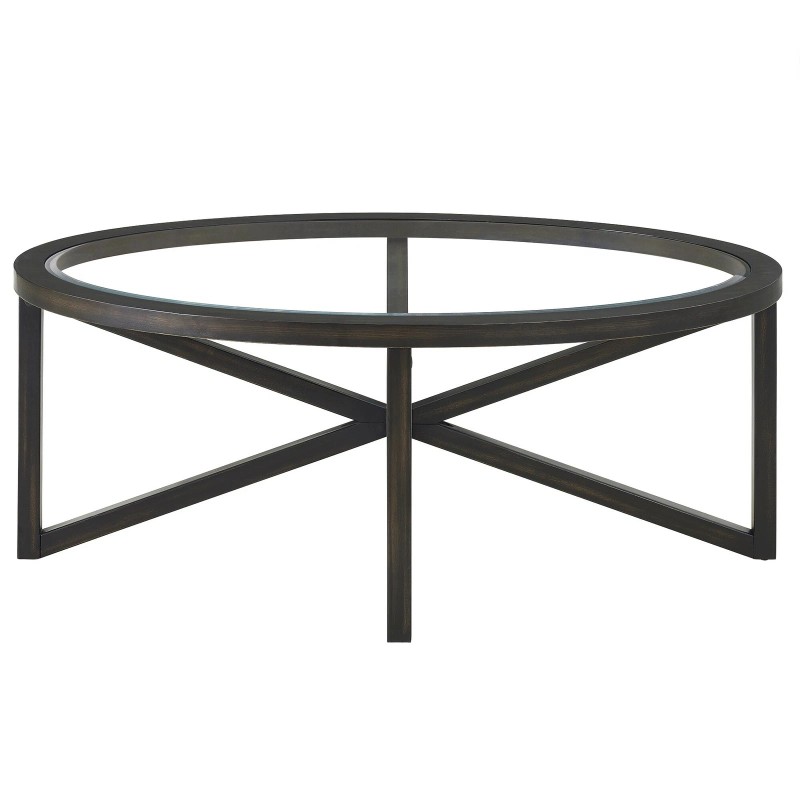 Tempered Glass Coffee Table Solid Wood Base Round Transparent Glass Top