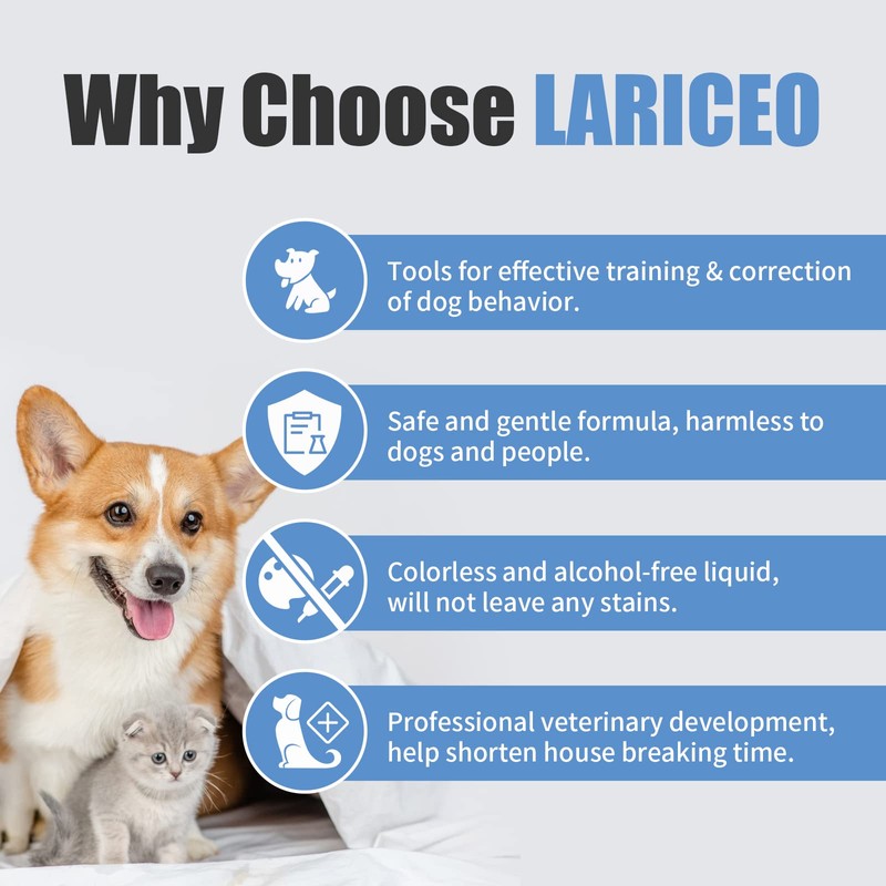 - CONVENIENT & FAST! You just need to spray your dog with our dog pee deterrent spray on affected areas both indoors and outdoors! The free dog clicker training device can help you shorten the door-breaking training plan and dog stop marking sao that you can better free your hands and save time.