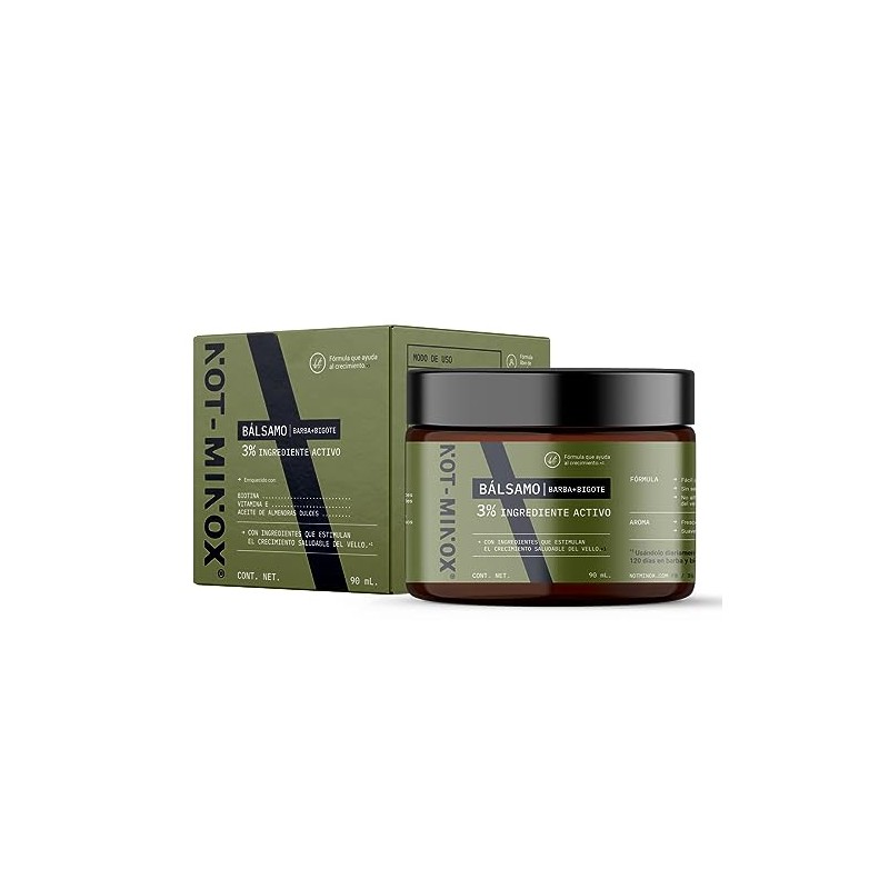 NOT-MINOX Balsamo para Crecimiento de Barba (Media o Huecos) y Bigote | 3% Ingrediente Activo, Reforzado con Biotina, Vitamina E, Aceite de Almendras Dulces | Sin Ingredientes Irritantes | Beard Growth