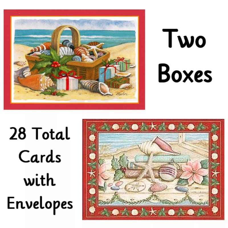 Notations (28) Coastal Beach Christmas Cards Sea Shells Basket Books ~ 2 Boxes w/Envelopes