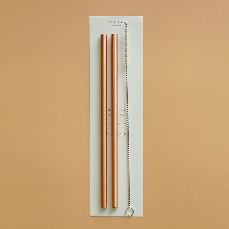Notdam Antibacterial Copper Straw 2P + Cleaning Brush / 놋담 항균 구리 빨대 2P+세척솔