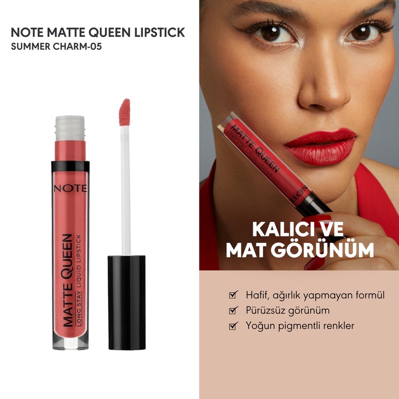 Note Cosmetique Matte Queen Lipstick Kalıcı Likit Ruj, 05 Summer Charm, Pembe