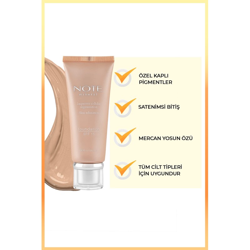 Note Mineral Saten Bitişli SPF 15 Kapatıcı Fondöten 401