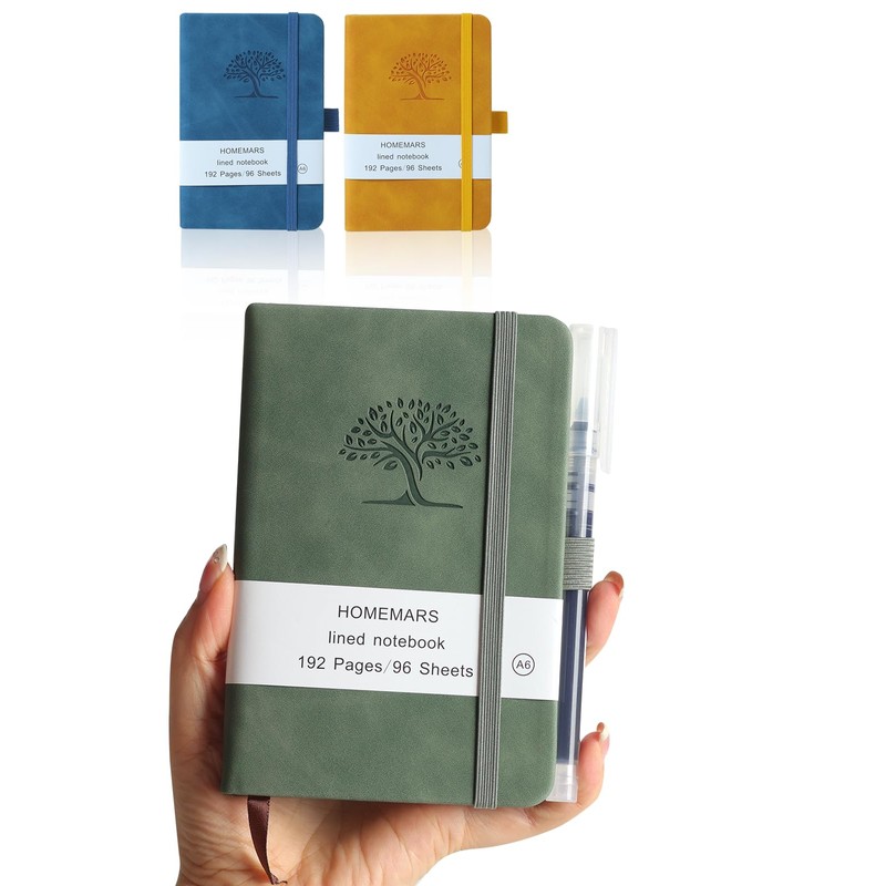 - Notebook A6, 3-piece notebook set, 14.4 cm x 9.6 cm notepad, 192 pages, embossed tree design, sturdy pen loop, hand-sewn