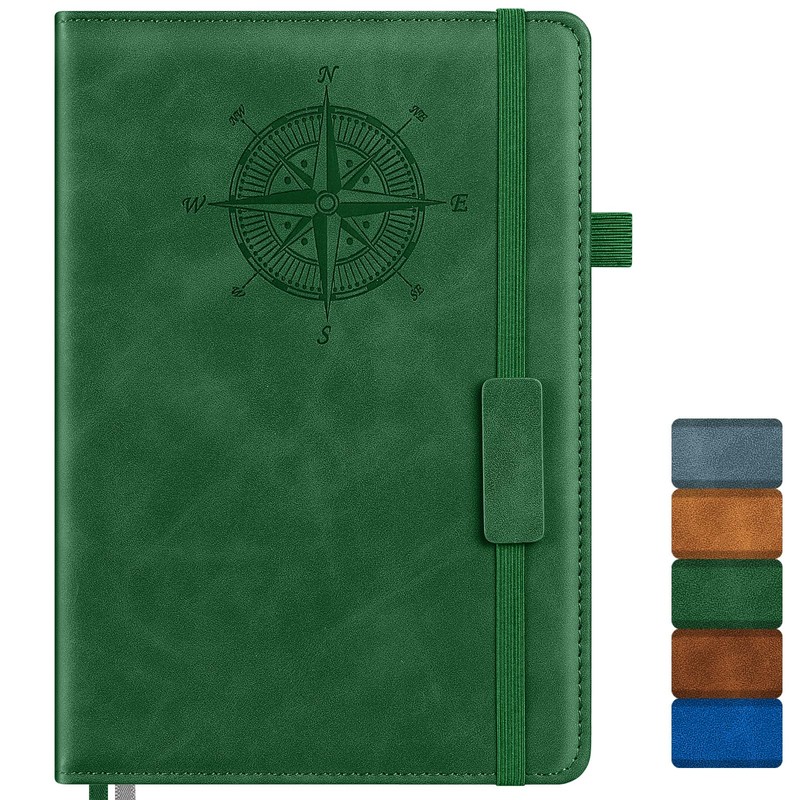 Notebook Journal for Women Men: Leather Journal for Writing, Hardcover College Ruled Journals Notebooks with Thick Paper, Large A5 Daily Journal for Travel, Diary, Gifts for Teens, 5.7"×8.5", Green