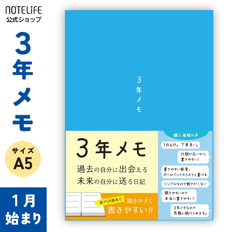 Notebook Life 3 Year Memo Journal A5 (8.3 x 5.9 inches (21 x 15 cm), Made in Japan, 3 Year Diary, Soft Cover, With Date (You Can Start Anytime) (Light Blue)