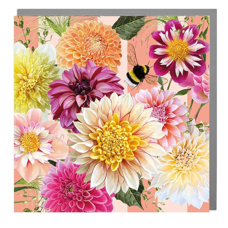 Notecard pack of 6x cards by Lola Design x Dahlia Beach 125x125mm and Blank Inside for your own message, with Grey Envelopes included - Made in the UK