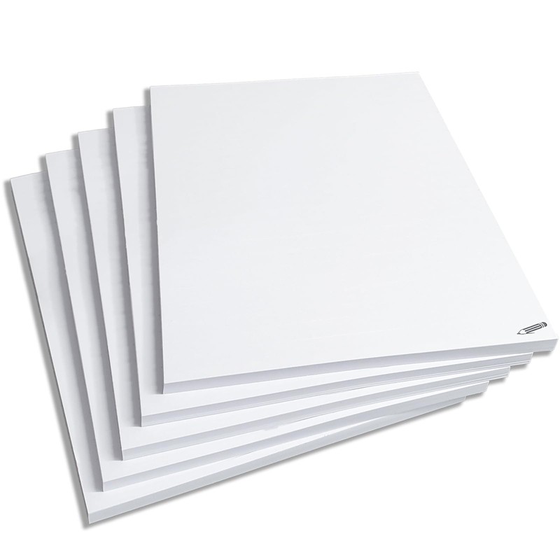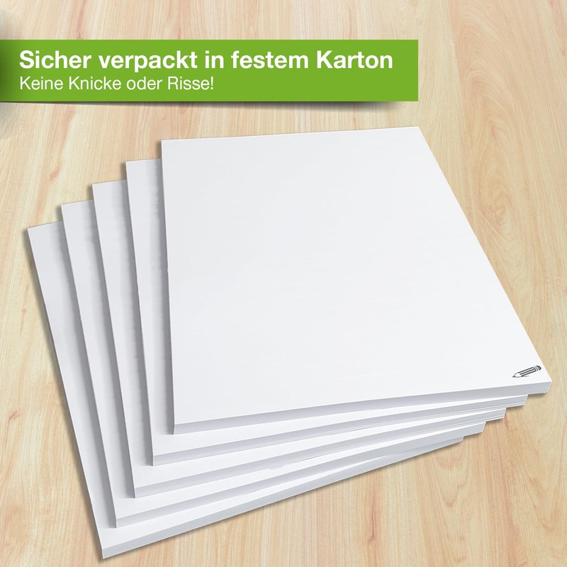 - 5 blank notepads – with 50 sheets per pad, sides on the head transparent glued and easy to tear off. Economy set of 5 pads DIN A5. Solid paper weight: 80 g/m²