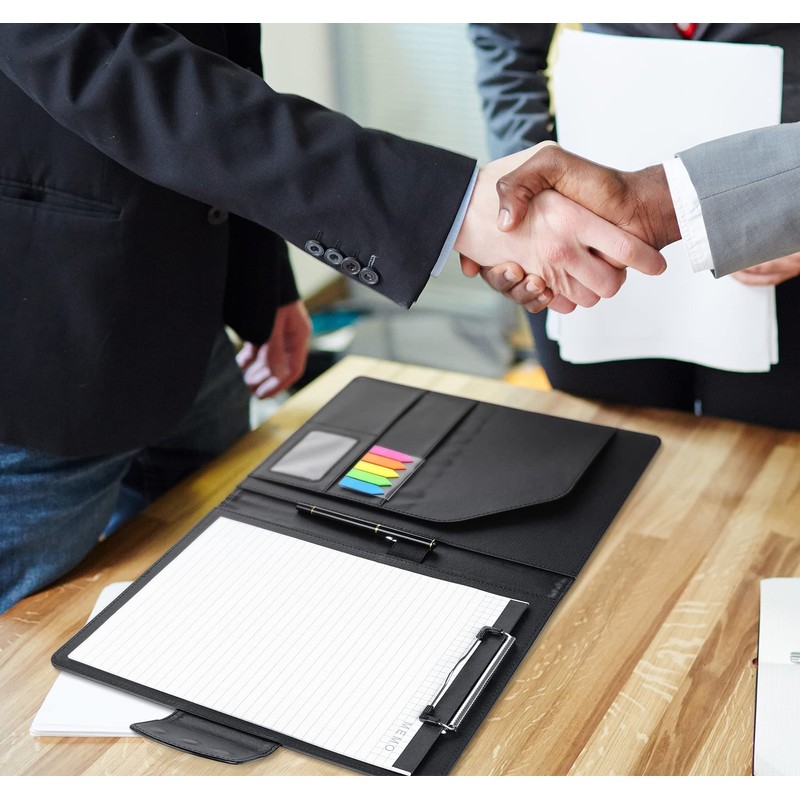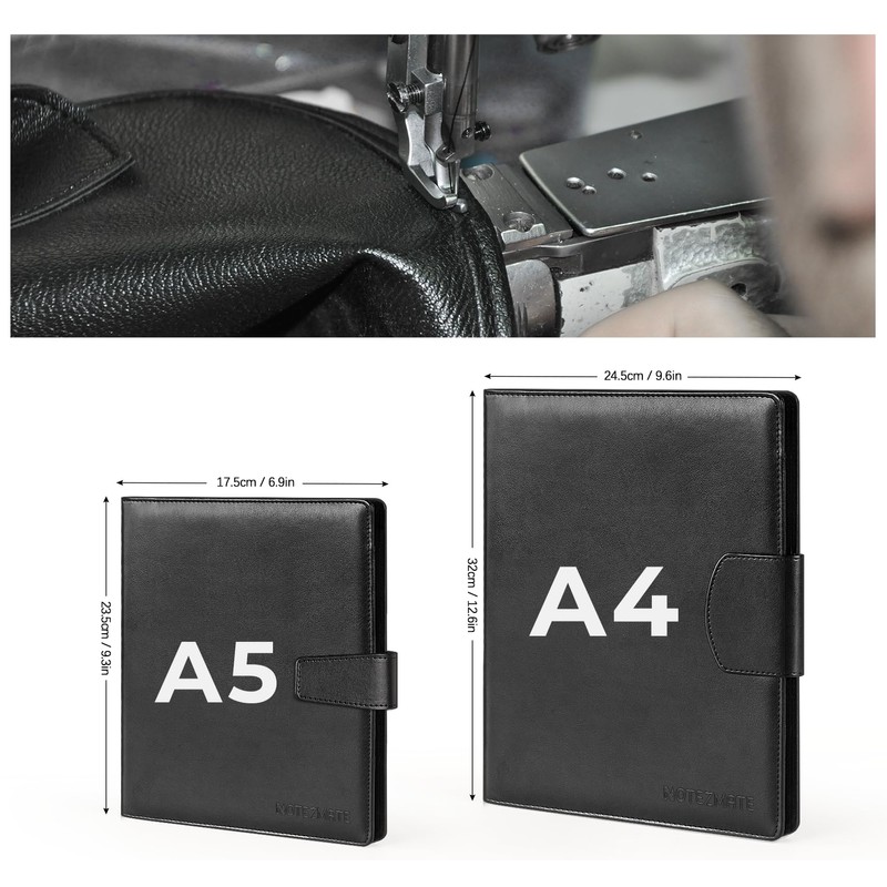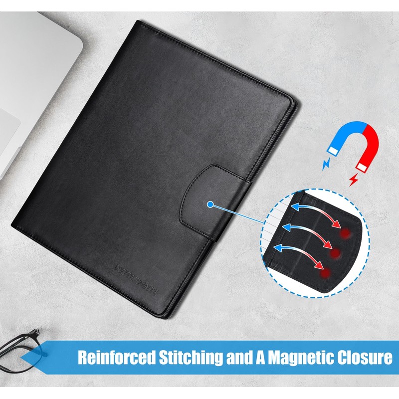 NOTEZMATE A4 Clipboard Writing Case with Magnetic Closure, Folder Clipboard Folder DIN A4 Made of PU Leather, Portfolio Padfolio with Paper and Pen, Document Folder Black for Office Supplies, School