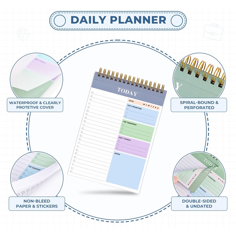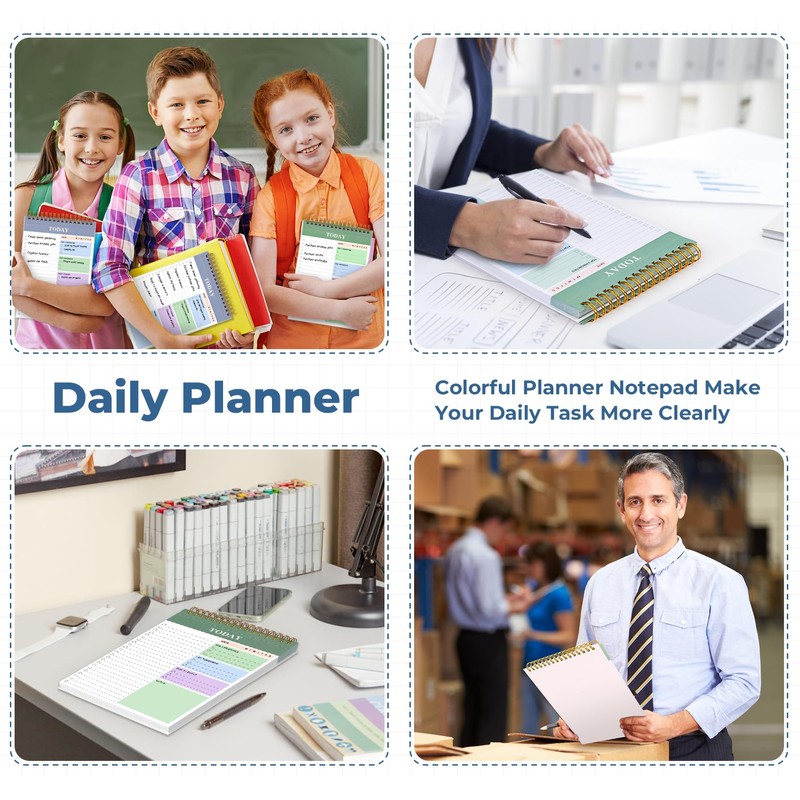 - ✍️【Quality and Durability】Our to do list pad crafted with 100GSM high-quality paper without bleeding though and strong double twin wire make this daily planner notepad durable.Thick paper with clear printing,adds a touch of elegance to your daily planning.The visually appealing design will make you proud to carry it around and show it off to others.