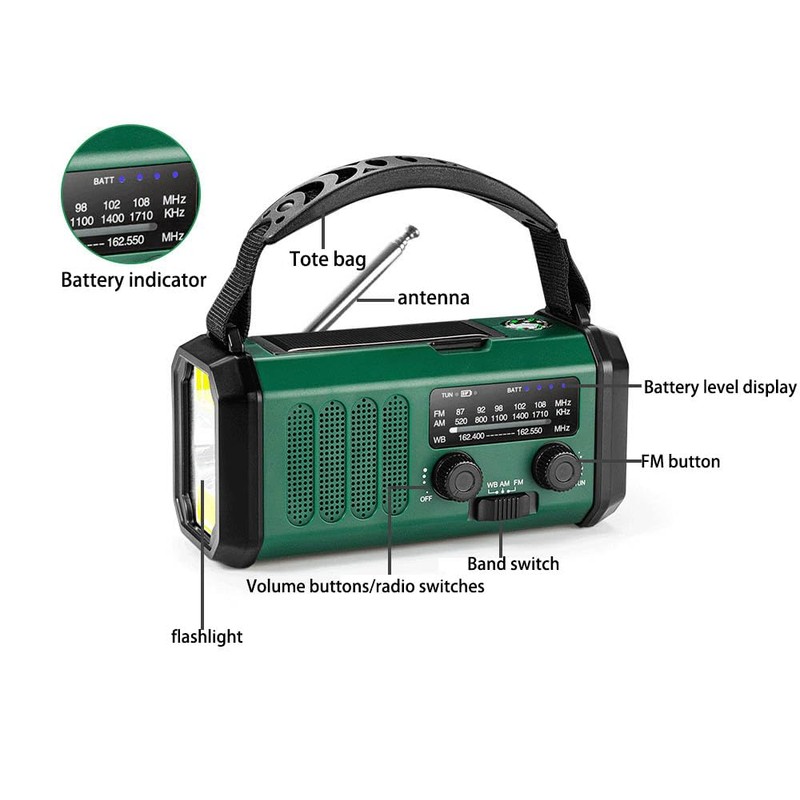 - [Fünf in 1 Notfalltasche] Radio + Handy-Ladegerät + Drei-Gang-Taschenlampe + SOS-Alarm + Leselampe - Ein wertvoller Helfer für Outdoor-Abenteuer und Notfälle zu Hause! Dieses tragbare AM/FM/Kurzwellenradio ist mit einem schnellen 20000-mAh-Handy-Ladegerät, einer dreistufigen Taschenlampe (hoch/niedrig/doppelt), SOS-Alarm und LED-Wiedergabelampen ausgestattet, ideal für extreme Wetterbedingungen, Outdoor-Abenteuer, Haus-Stromausfälle und mehr.