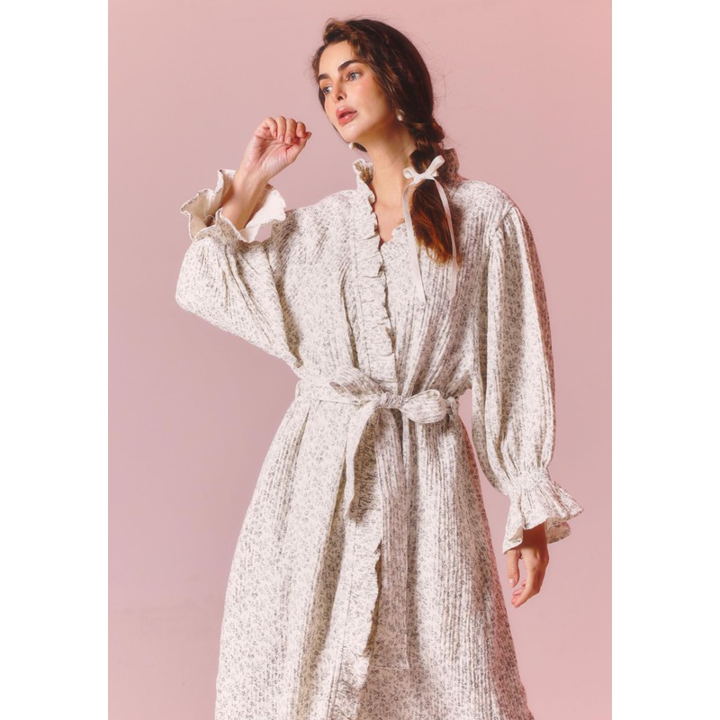 NOTHING FITS BUT Muslin Gauze Robe Maternity Gown, Women’s Cotton Classic Nursing Robe, Puffed Sleeves (US, Alpha, One Size, Regular, Regular, Ichika)