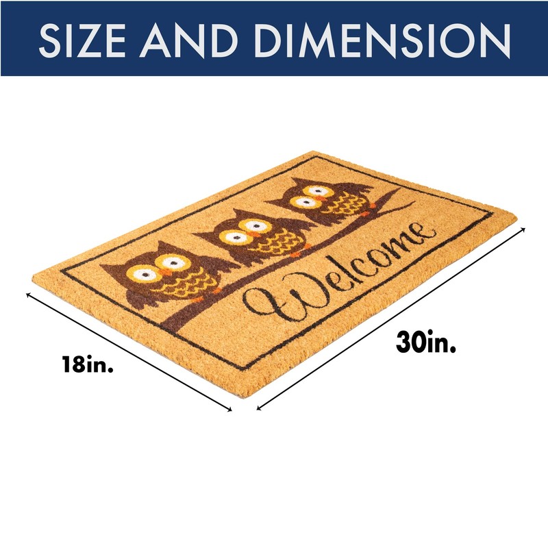 NoTrax, Owl, Vinyl-Backed Natural Coir Doormat, Entry Mat for Indoor or Outdoor Use, 18"x30", C12 (C12S1830OW)