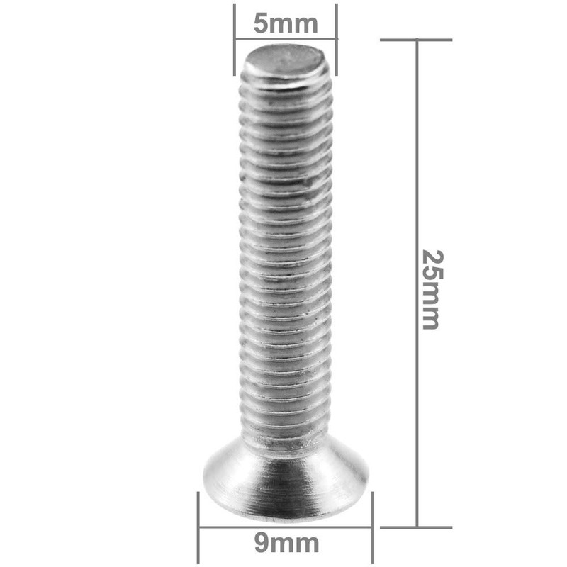 - Diameter: 9mm(head), 5mm(thread); Length: 25mm