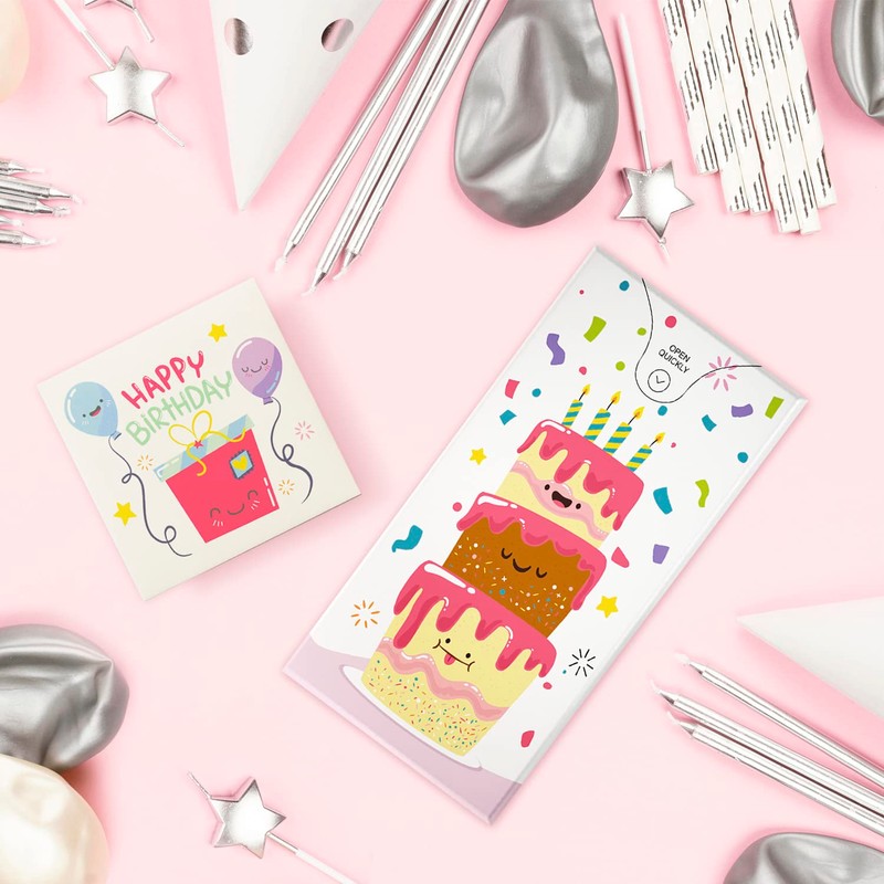 - UNPRECEDENTED SURPRISE: Once the envelope is opened, your chosen card will pop out, taking the form of a cube, and sprinkling the recipient with glitter and confetti!