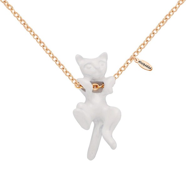 NOUMANDA Lovely Hanging White and Black Cat Necklace for Cat Lovers (White cat)
