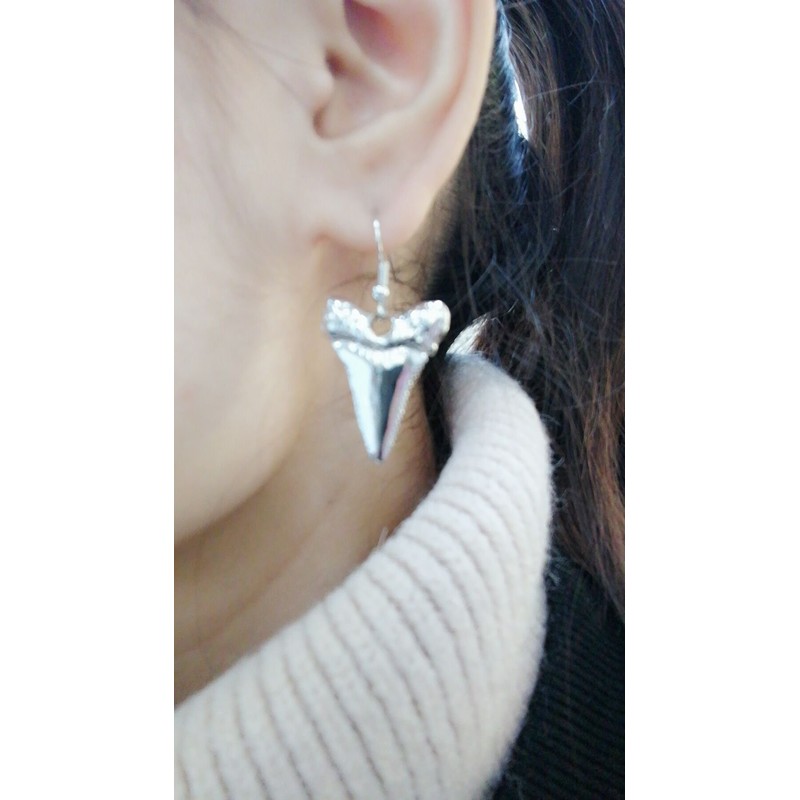 NOUMANDA Silver Shark Tooth Earrings Teeth Druzy Dangle Earrings for Women