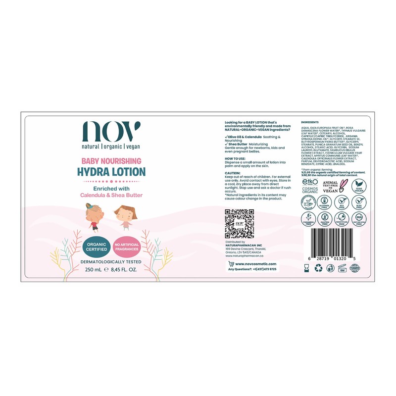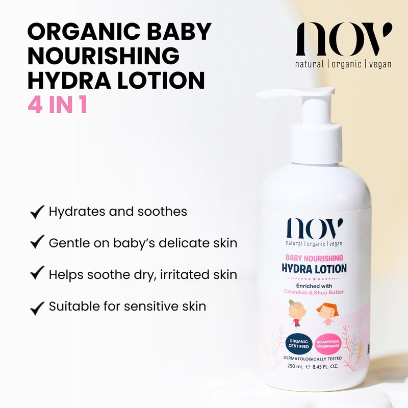 NOV Baby Nourishing Hydra Lotion - Baby Lotion for Newborn to Calm Itchiness and Redness - Newborn Essentials Shea Butter for Sensitive Skin - 8.45 oz