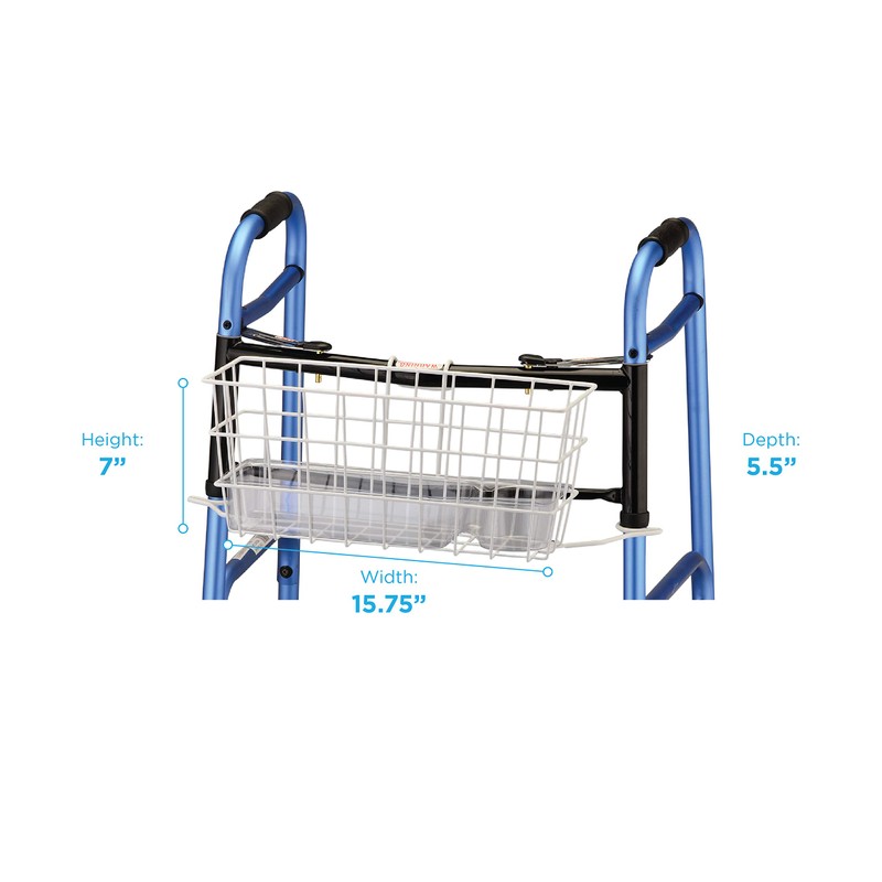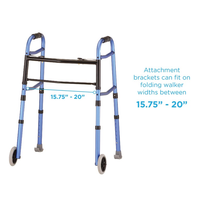 - UNIVERSAL FIT securely fits on all folding walkers. Attachment brackets can fit on folding walker widths between 15.75” - 20” (measured between legs below front bars - See Image).