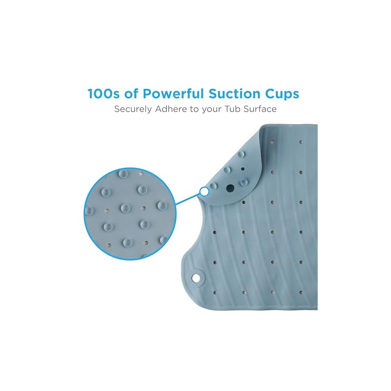- Constructed with durable, latex-free rubber, the bath mat is easy to clean.