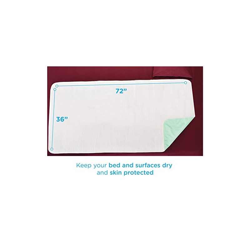 NOVA Medical Products Waterproof Reusable Underpad with 100% Cotton Skin Soft Top Layer, Washable Incontinence Bed and Surface Overlay, Super Absorbent, 36” x 72”