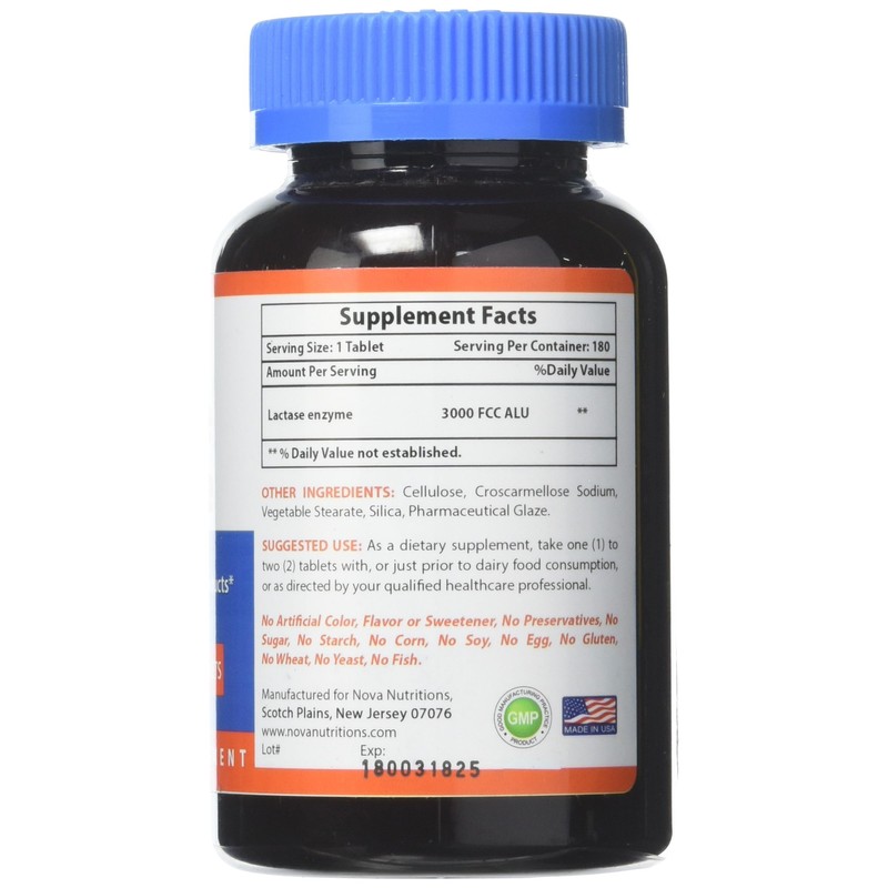 Nova Nutritions Lactase Enzyme 3000 FCC ALU 180 Tablets