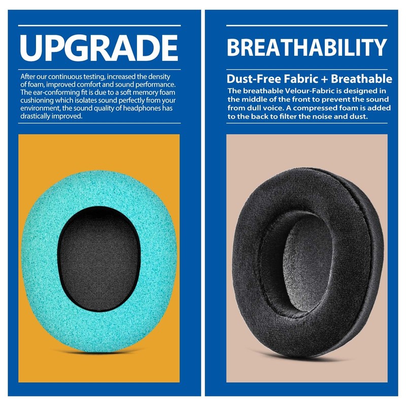 - BREATHABLE: Comfortable breathable material is more suitable for long-term use. Maintaining a comfortable, breathable feel to use, the earpad won't feel dull. Ear comfort to the point of forgetting the headphones are even on.