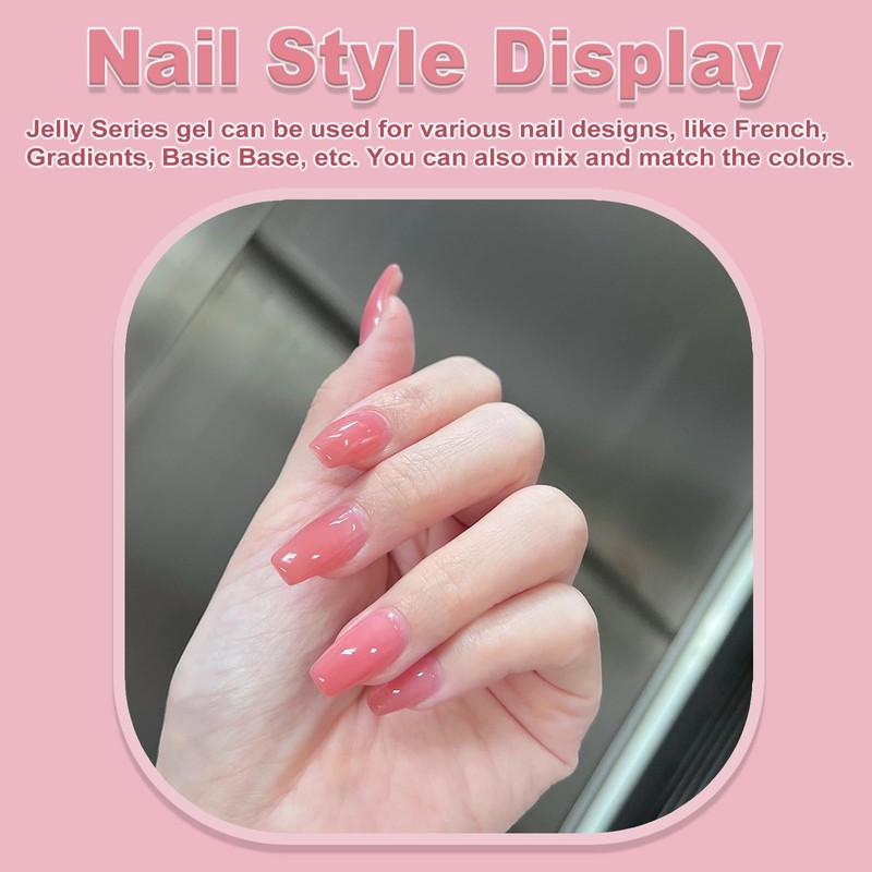- 【JELLY PINK NAIL POLISH 】: Pink sheer nail polish has a semi-transparent color, the more layers you apply the deeper the color becomes and goes from sheer to opaque.