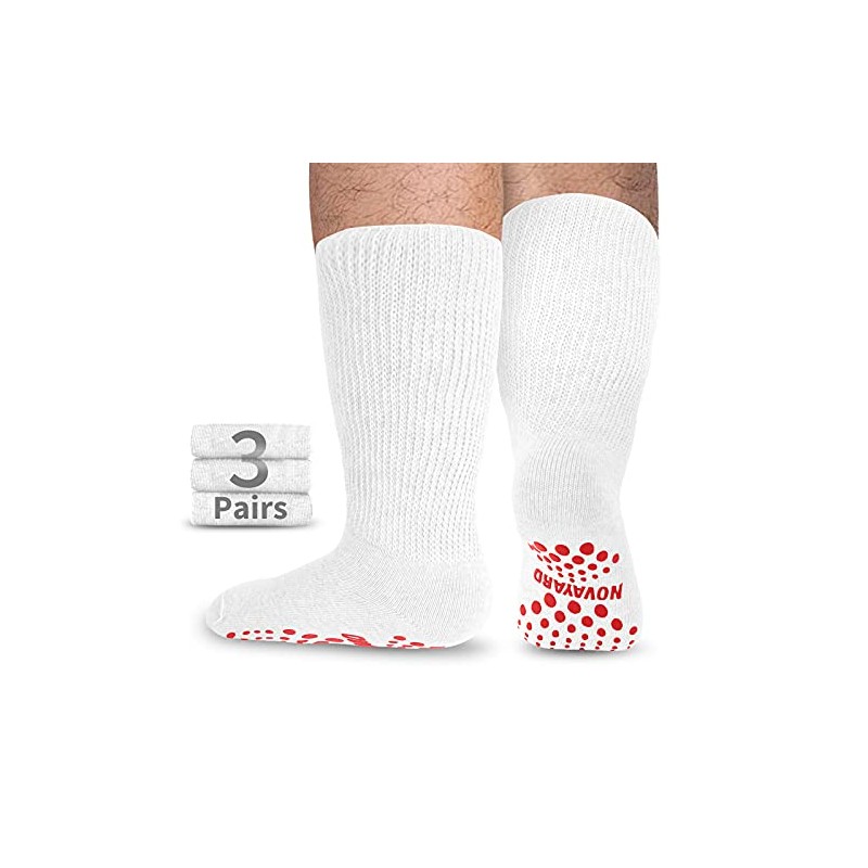 NOVAYARD Non Slip Diabetic Socks Wide Neuropathy Socks Edema Bariatric Hospital Socks 3 Pairs