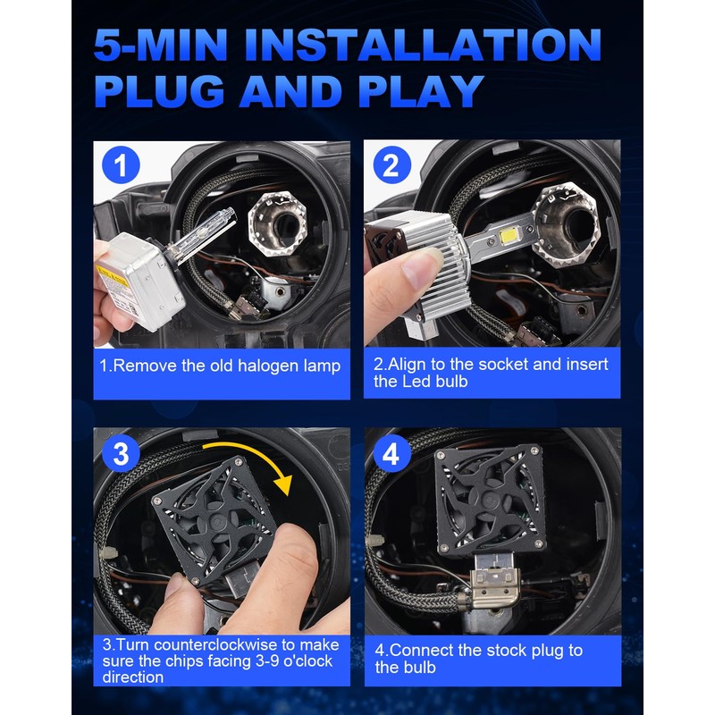 - Plug & Play Installation---Designed with a 1:1 mini size, these bulbs are engineered to fit your vehicle seamlessly. No need for complicated modifications or extra adjustments – simply plug them in and enjoy immediate, enhanced performance. It's a hassle-free upgrade that ensures a perfect fit with your car’s original lighting system, making installation quick and easy.