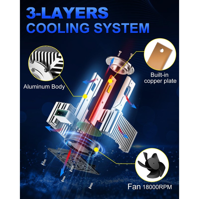 - Advanced Cooling System for Superior Durability---Say goodbye to overheating concerns. Our bulbs are built with aerospace-grade aluminum for excellent heat dissipation, paired with high-speed rotating fans to keep temperatures in check. With an IP68 waterproof rating, these bulbs are designed to withstand even the harshest conditions, ensuring long-lasting, reliable performance under any weather. Enjoy peace of mind knowing your bulbs are built to last and perform at their best, no matter the environment.