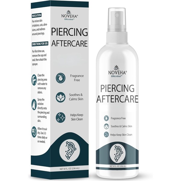 NOVEHA Piercing Aftercare Spray - Fast Cleaner Solution for Ear, Nose, and Be...