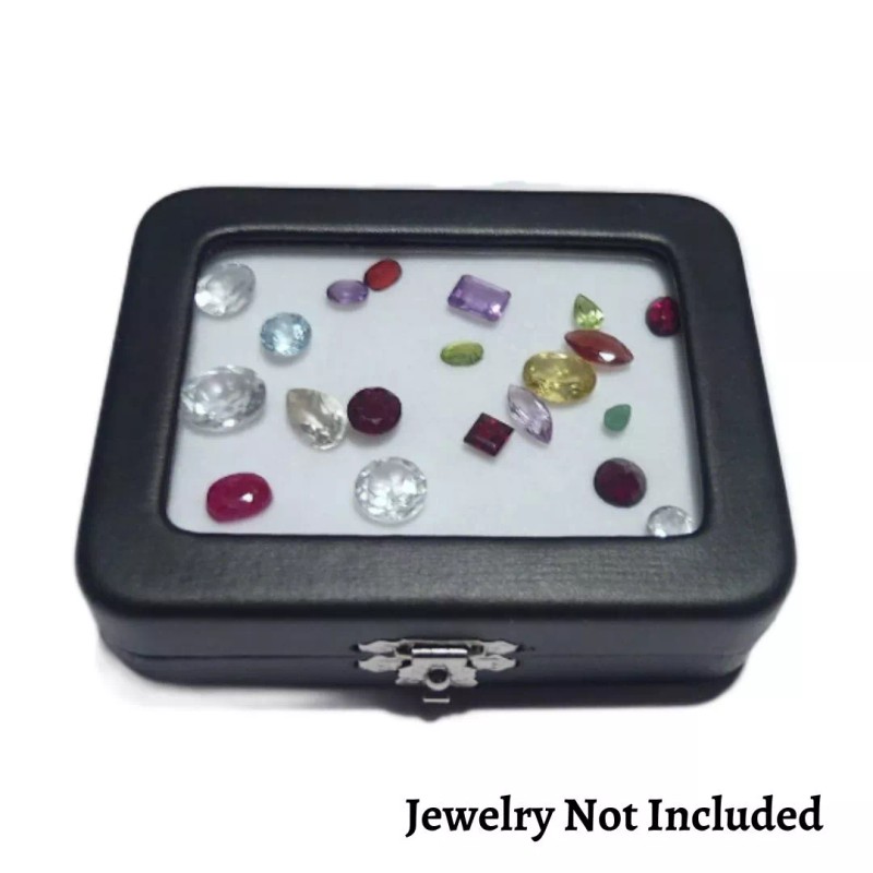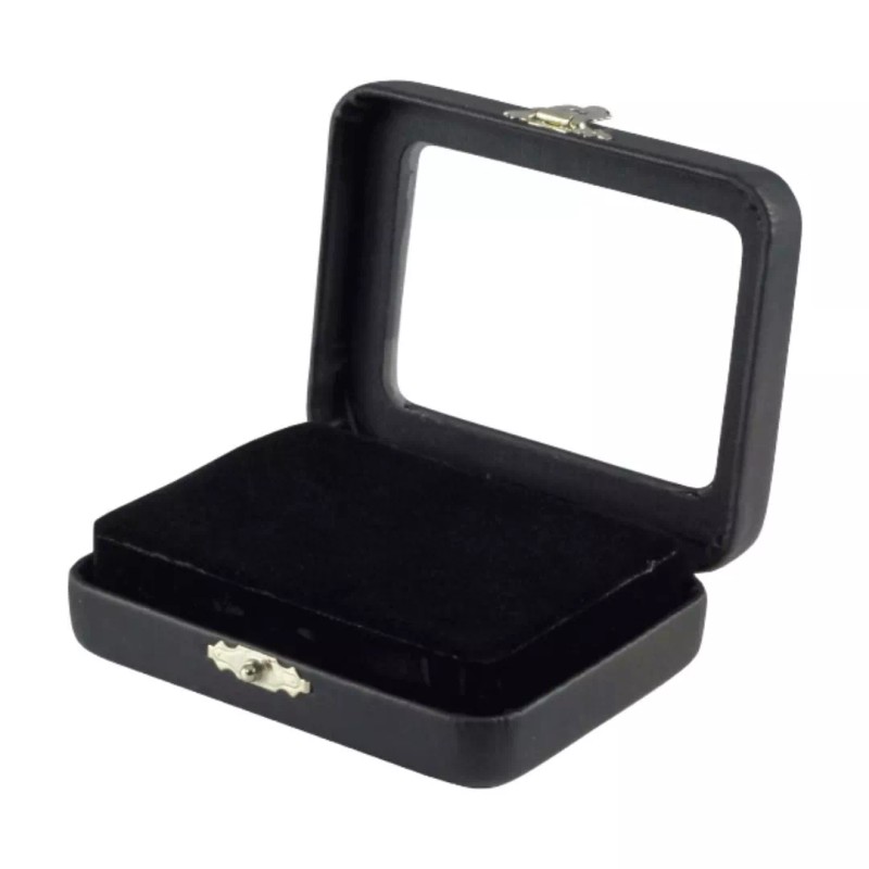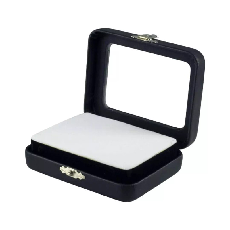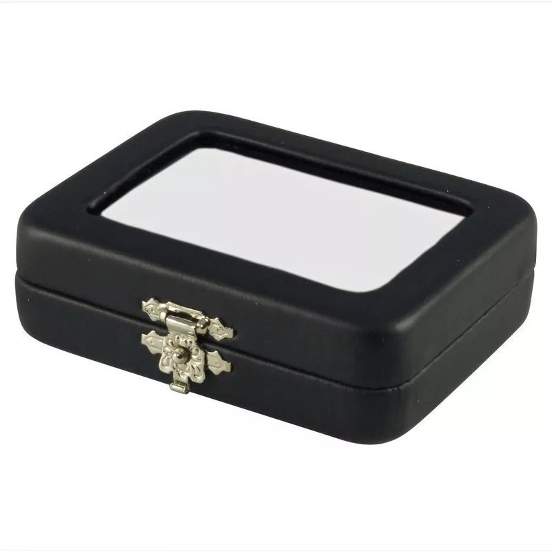 Novel Box Black Leatherette Glass Top Jewelry Case with BK/WH Reversible Pad