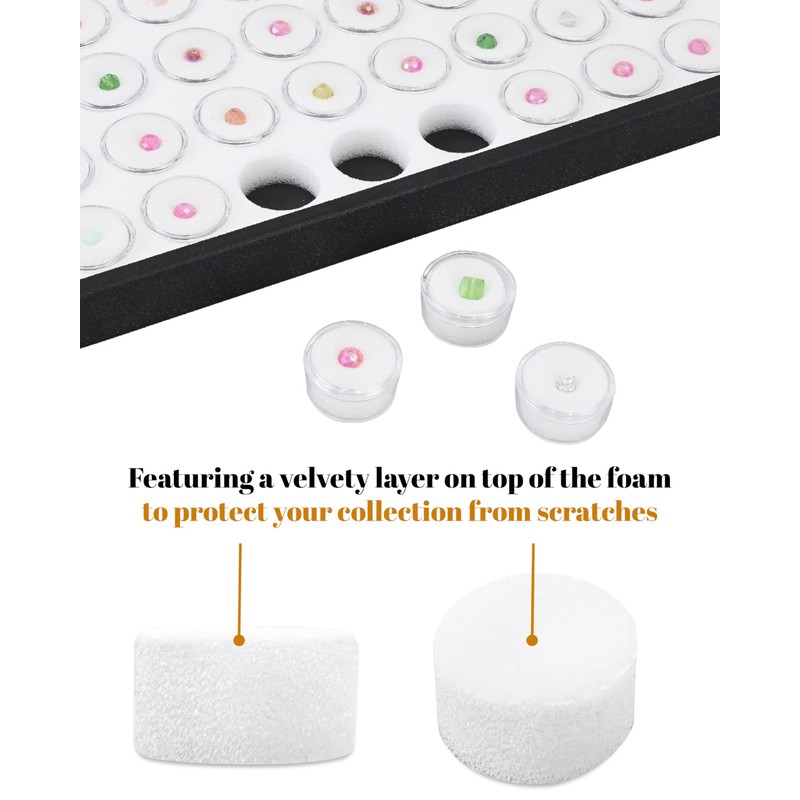 - This Pack Includes: This pack includes 5 gemstone display tray foam liners, all in white. Each tray holds 24 clear acrylic gem jars, offering a total of 120 jars, providing ample space to organize and securely store your gemstones, coins, and jewelry.