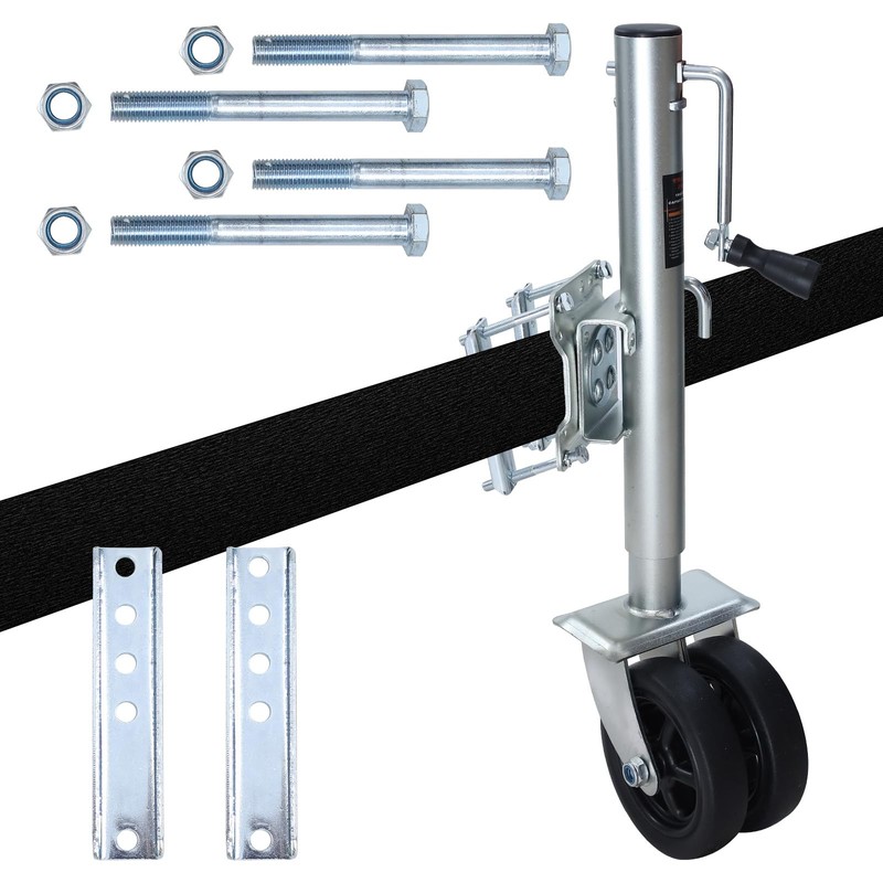 Equipped with a swivel bracket,the trailer jack with wheel can swing up and out of the way for towing