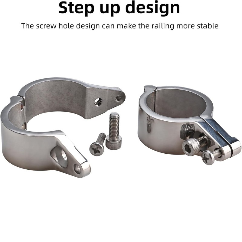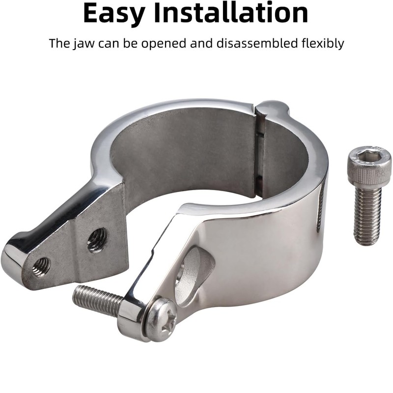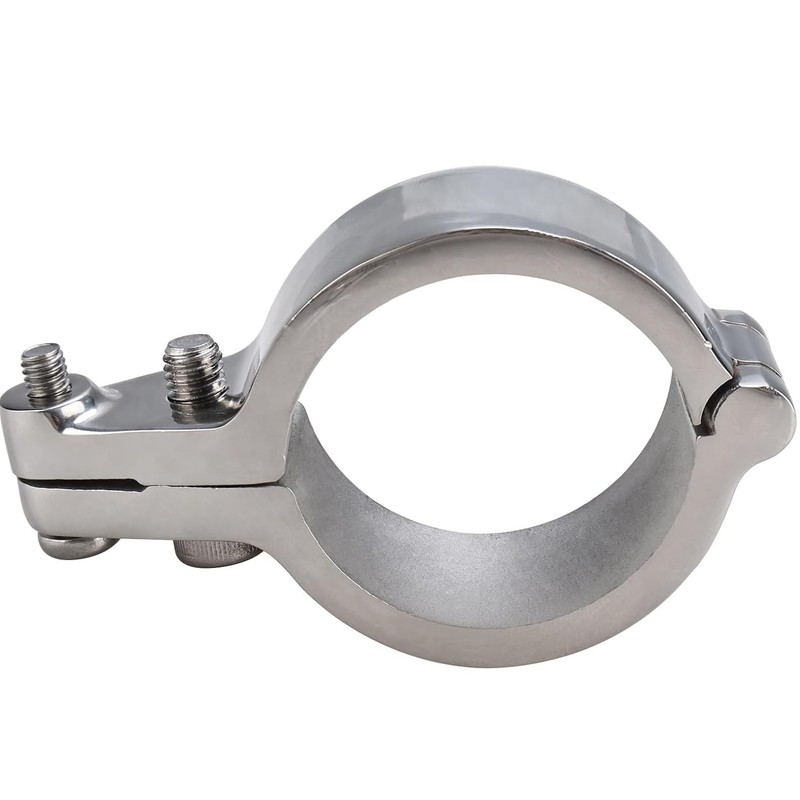 A locking screw on the side of stainless hinged bimini clamp makes tight and locking position