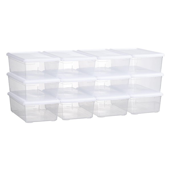 novelinks 6 Quart Clear Plastic Storage Bins with White Lids Stackable Box Craft Storage Organizing Container,12 Pack