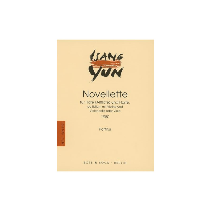 - Novellette: Flöte (Altflöte) und Harfe, ad libitum mit Violine und Cello (Viola). Partition et partie.
