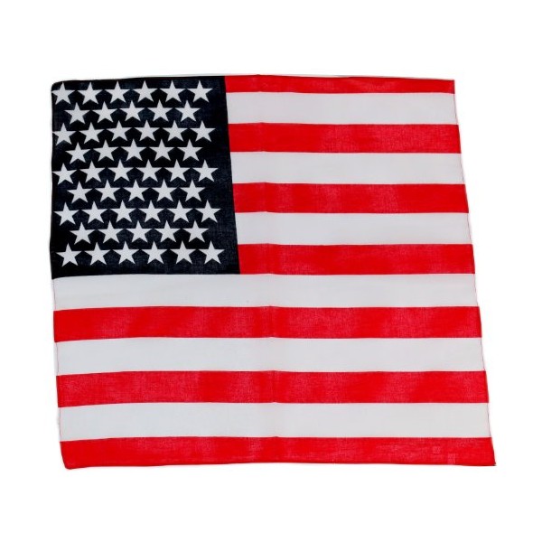 Novelty Bandanas 100% Cotton, Head Wrap 22" x 22" Single Pack, Usa Flag, One Size