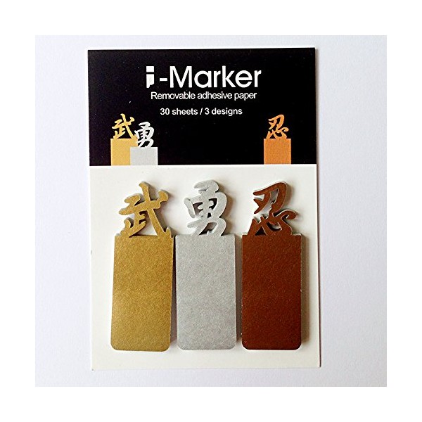 Novelty Fun Cut-Out Texts Design Chinese Characters Sticky Index Tabs Page Markers ~ 3 Designs ~ 30 Tabs per Design ~ Wu (Brave), Yong (Courageous) & Ren (Endure)