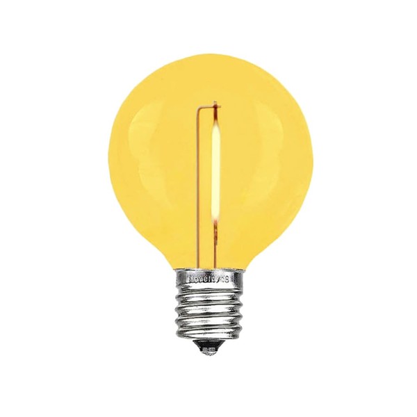 Novelty Lights 25 Pack G50 LED Light Bulbs, E17 C9 Intermediate Screw Base Shatterproof Outdoor String Lights Yellow Globe Bulbs, Edison Light Bulbs for Patio Decor, Yellow, 0.6 Watt