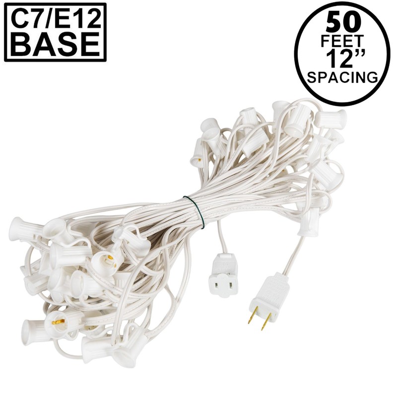 Novelty Lights 50 Foot String Light Set - Indoor/Outdoor Stringer Set for Christmas, Wedding Decor, Patios, & More - C7/E12 Intermediate Base (White Wire, 12" Spacing)